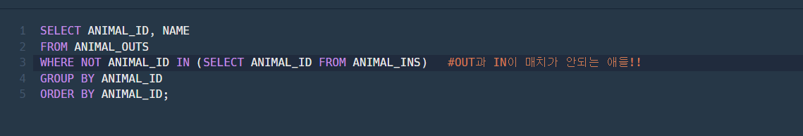 [코딩테스트] Level3 이제 중급자 코스...> FROM A(NULL값이있는테이블) RIGHT JOIN B(NULL값이 없는 테이블) LEFT JOIN => FROM A(NULL값이 없는 테이블) LEFT JOIN B(NULL값이 있는 테이블) 문제2. 관리자의 실수로 일부 동물의 입양일이 잘못 입력되었습니다. 보호 시작일보다 입양일이 더 빠른 동물의 아이디와 이름을 조회하는 SQL문을 작성해주세요. 이때 결과는 보호 시작일이 빠른 순으로 조회해야합니다. .. SQL 2023.09.07